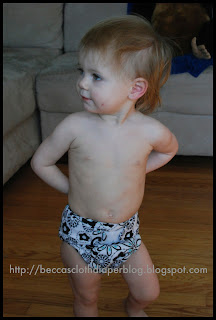 When I got the diaper, I was very pleased. It was thick, well made, soft, and pretty. I was worried at first that it had velcro closures as the only option, since Bunny loves to undo her velcro, but the closures are so sturdy that even I have a tough time getting them open--which is a very good thing!